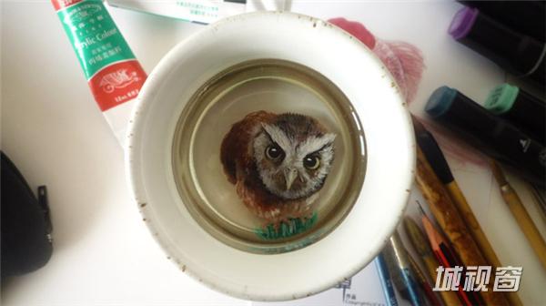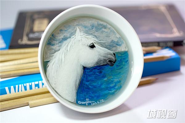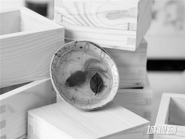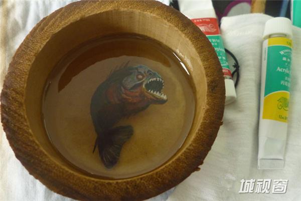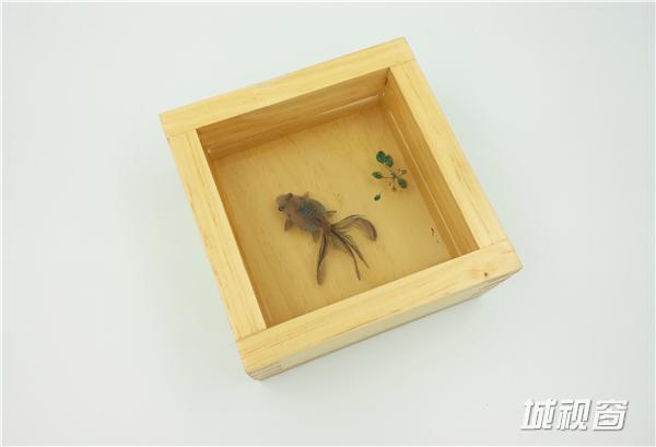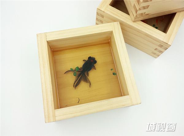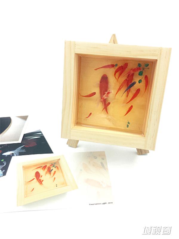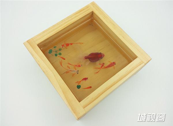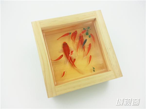 《自游》13X13X6(CM),容器:手工木盒,绘制材料:丙烯颜料。