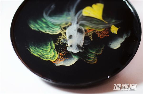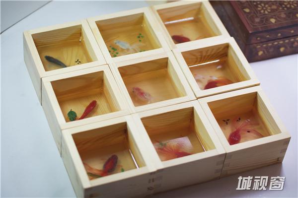 《吉运九如》10X10X4.5(CM),容器:手工木盒,绘制材料:丙烯颜料。