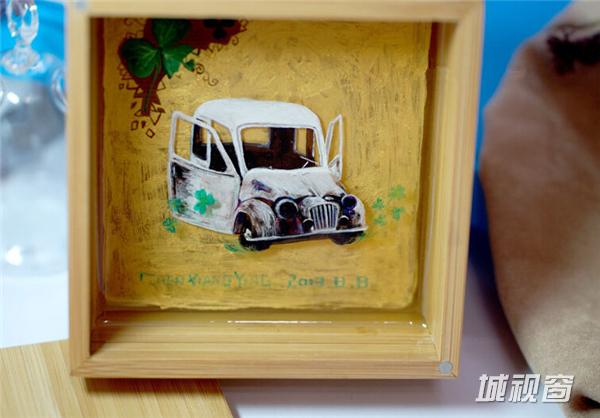 《春启自多福》13X13X6(CM),容器:手工木盒,绘制材料:丙烯颜料。