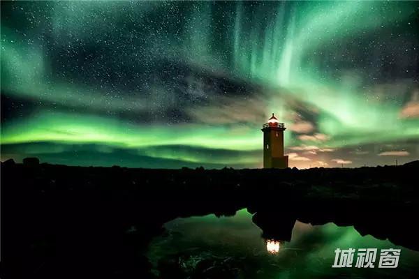 Lighthouse And Aurora-Filled Sky 位于冰岛 摄影师 Gunnar Gestur