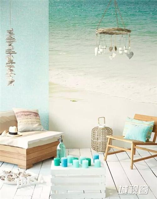 家中的海浪 在家里随时享受海边风情怎么样?只需在墙面上铺贴一幅海洋的仿真壁纸,或者大幅装饰画,搬来几把藤椅,几个贝壳装饰,便能让海洋风光来到你家。