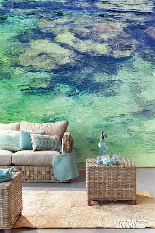 畅游水世界 水的清爽能让视觉轻松降温,一幅大的水面壁纸让身心仿佛沉浸入清凉的水中。如果不想大动干戈,给背景墙挂上几幅水的装饰画也能画龙点睛。