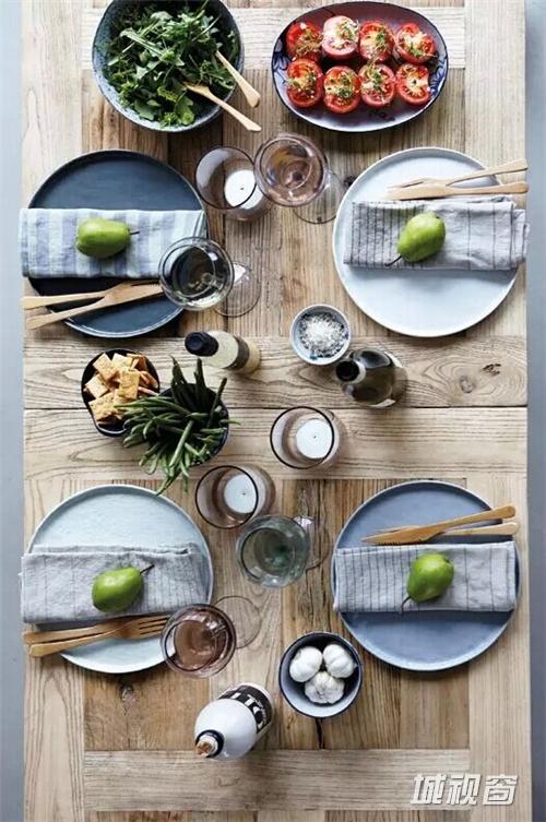 餐桌上的小清新 高温往往让人失去好胃口,不如让餐桌也清新起来,木制餐具、粗瓷碗碟,加上麻质餐巾,最清淡的食物也瞬间美味起来。