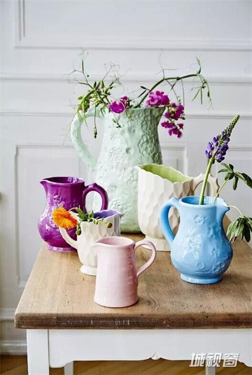 花朵好身姿 家中的陶瓷花瓶、水罐不要长久闲置,让花朵随时绽放其中,甚至可以是路边的野花俊草,精心装饰后便是室内的独特风景。