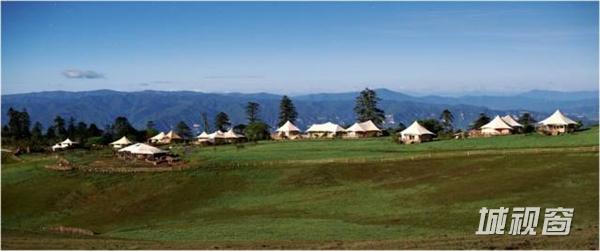 没有钢筋水泥墙,没有喧嚣人群,寥寥几顶帐篷散落在草原之上,拥有一望无际的辽阔绿色,开阔的高山草甸风光,原始森林和丹霞奇观,漫山的杜鹃花海和丹霞丛峰交相互应……
