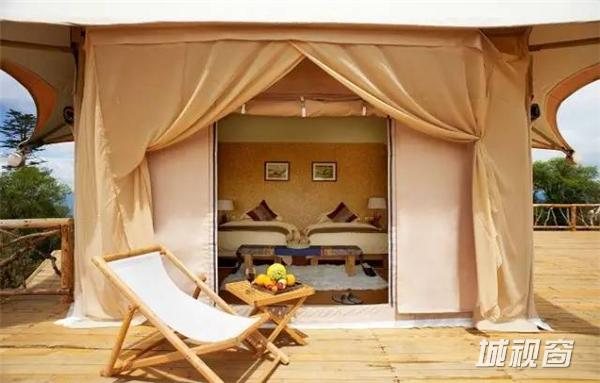 帐篷采用流线型的设计,外观更加简洁朴素,与周围环境融为一体。在帐篷内,可看到帐外群山巍峨和晚霞曙光,室内的每一个内饰,均体现了当地彝族和普米族的起居文化火塘元素。