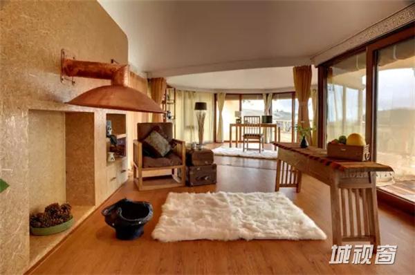 格拉丹帐篷营地虽然是高海拔区,完全不用担心低温。每顶帐篷均采用的是四层保温的隔热材料,防紫外线的双层落地玻璃,防雪的尖顶设计,细节一点都不含糊。室内均采用的是环保材料,自然的大地色系为主色调,180º落地玻璃全景观,在帐篷里一览草原美景。