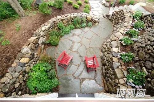 ★石板:扁平的石头被挖掘出来,有天然的裂缝,通常可以用做不规则的宽边缘,