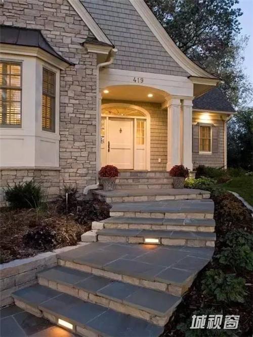 这是多种类型石头使用的优秀典范。这些石头有着同一个色调,不规则的扁平石头小石板用来铺设走道,重量级的大石头表面磨得比较光滑,用来做土墙。