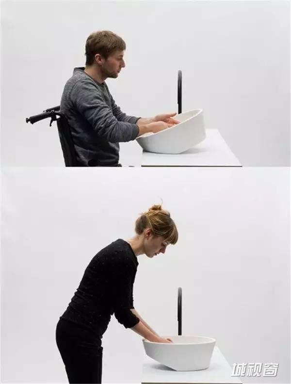Gwenole Gasnier设计的一款适合所有人的洗手盆,一个斜角,满足了儿童和坐着轮椅的人的使用。