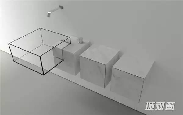 优雅的大理石与透明玻璃组成的几何洗手盆,通透简约,经常在普象的内容里出现,简直就是大爱。