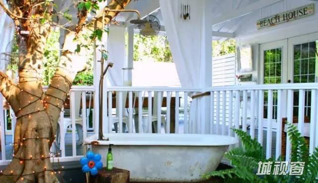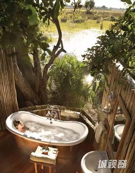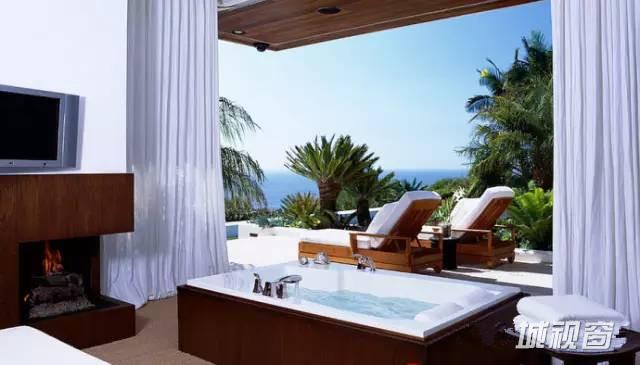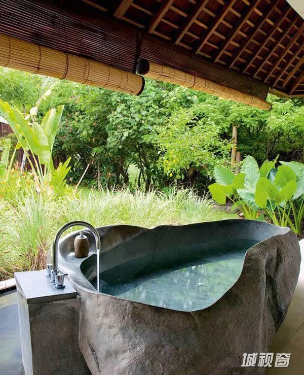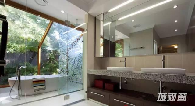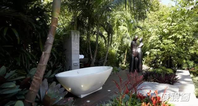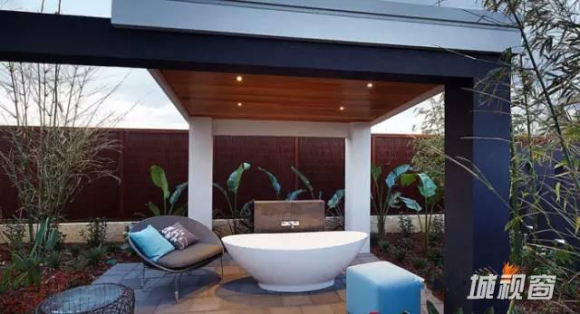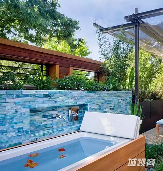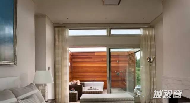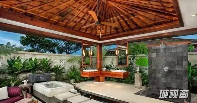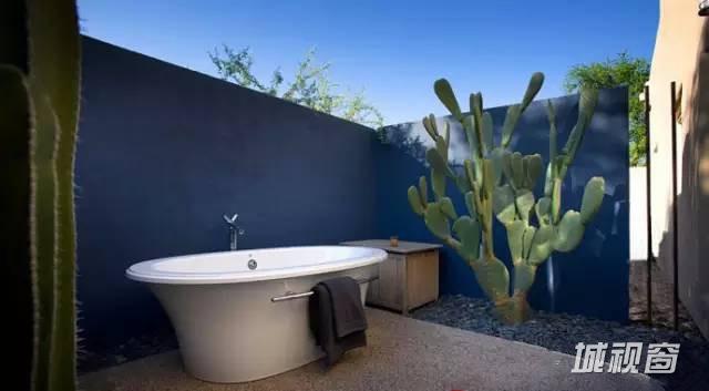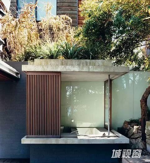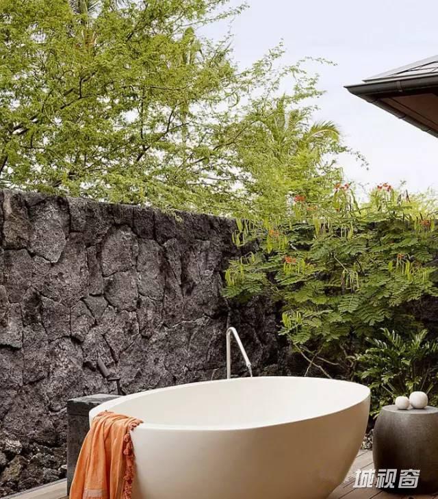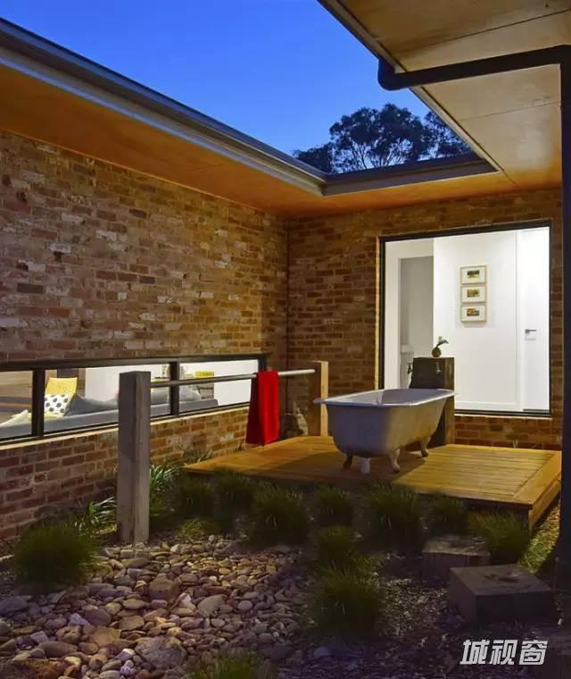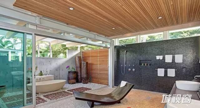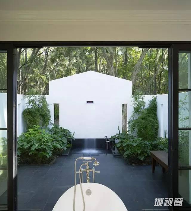 浴室分为两部分,浴盆自然延伸到室外,淋浴区在室内,保证空气流通,两全其美。