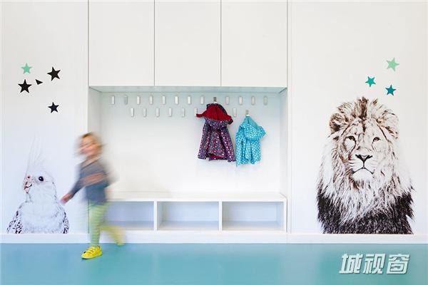 设计团队把细节放在了动物元素的运用上,比如墙面上出现的各种动物素描肖像,以及洞穴一般的小空间,提供了十分灵活和多样的支持幼儿各种行为活动的空间,利用的则是建筑本身独特的剖面结构。