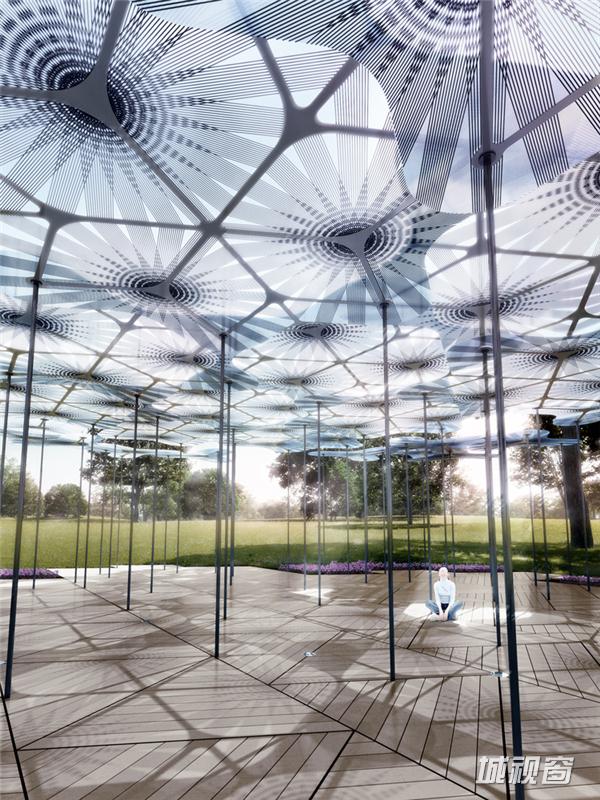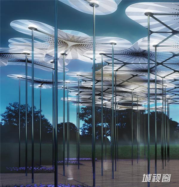 Amanda Levete说道,“我们设计的MPavilion旨在创造一个森林树冠一般的感觉,看似脆弱、难以支撑起花瓣的纤细柱体,在微风中轻轻摇摆。树冠下光影斑驳,看起来非常的梦幻。我们正在与澳大利亚专家mouldCAM不断突破技术屏障、所研制的复合材料制成的花瓣有着五米直径,但只有几毫米厚。”