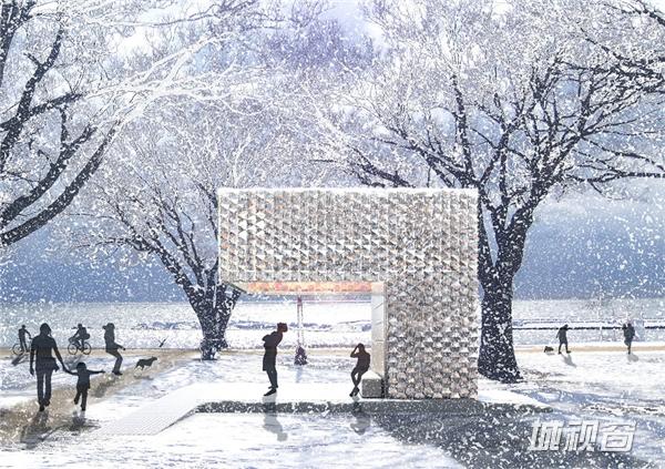 该亭阁意在成为芝加哥建筑双年展的一个组成部分。随后将移至湖畔,用作夏日消暑凉台。