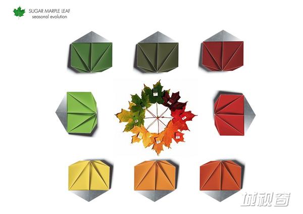 通风和采光设计与铝箔树叶协调一致,营造出悬空阁顶下面灵动多变的空间感。铝箔树叶灵感来自于糖枫树叶。糖枫是当地的一种树木。微风徐徐吹动,阳光透射进来。风向转换时,整个空间采光亦随之更迭。