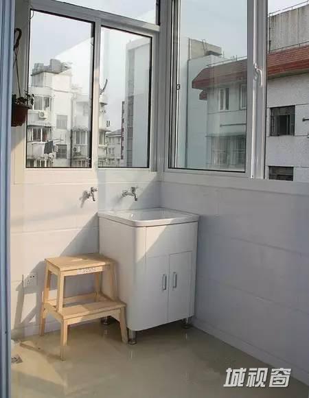 一边是放置了水槽,用来洗洗抹布浇浇花什么的(舍不得在流水台盆洗抹布啊,感觉就像往小溪里倾倒工业废水一样)。旁边预留了洗衣机龙头和地漏,准备以后可能会在这儿摆一个小洗衣机,用来洗洗内衣或者宝宝的小衣服什么的。