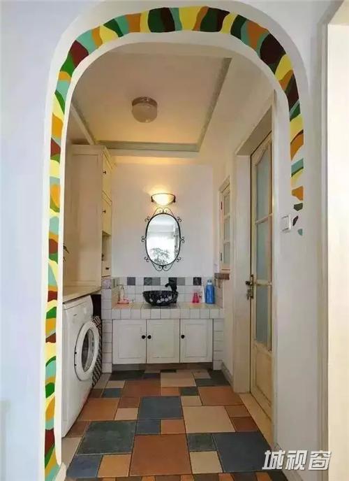 卫浴间分隔出了收纳空间,很好的将洗衣机容纳进去。
