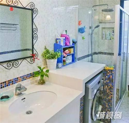 腾空设计的洗手台样式也可以放置洗衣机。柿君提醒,该设计对身高有要求,有宝宝的家庭谨慎选择。