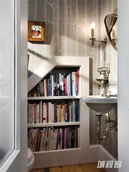 在这不大的浴室里,享受畅快舒适的泡泡浴的同时阅读着小说里的爱情故事。 为了让书融入生活,设计师简直费尽了心思。