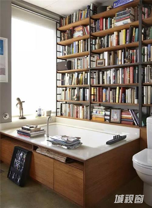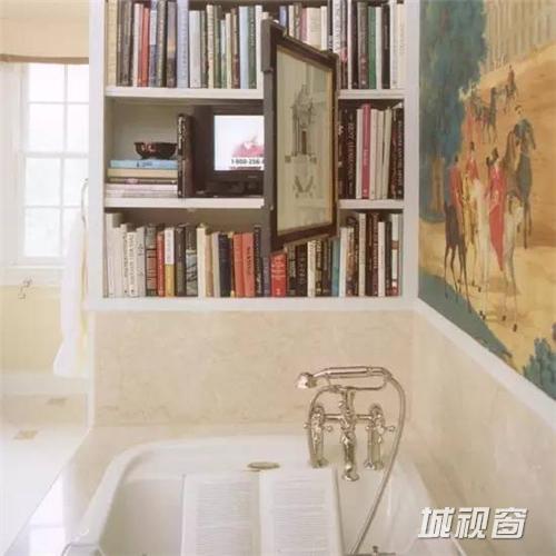 “要么读书,要么旅行,身体和心灵总有一个需要在路上!”,有人说,卫生间是一个迸发灵感的地方,你觉得呢?环望四周,隔开了喧嚣尘世的书墙,用书香营造一个文艺范的浴室。当浴室与文艺气息为一体的时候,我想你一定把持不住想要宽衣解带泡个澡的心,一杯红酒,一本书,一个下午……