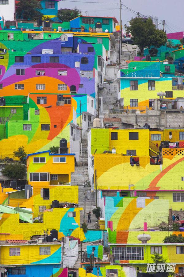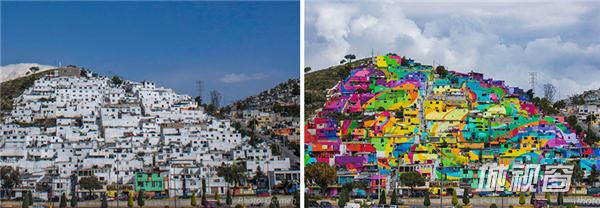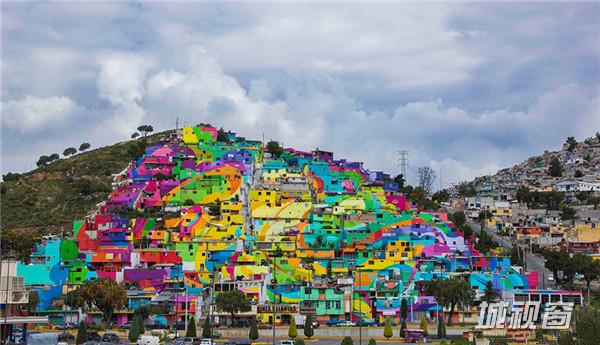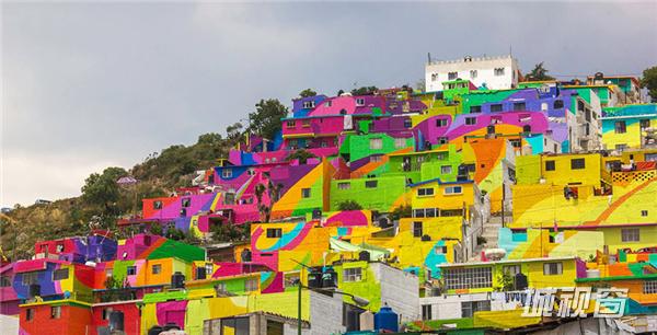 看,墨西哥整座山上的小镇都被涂上了彩虹