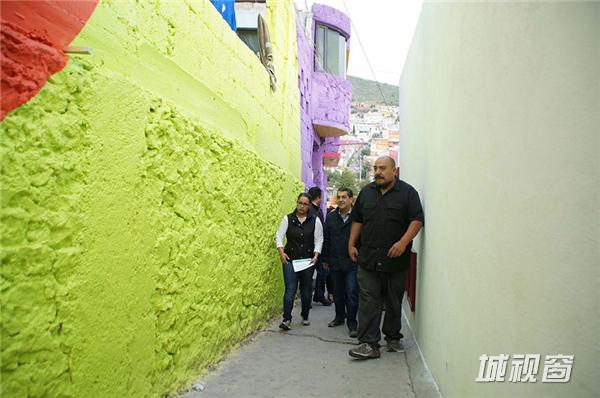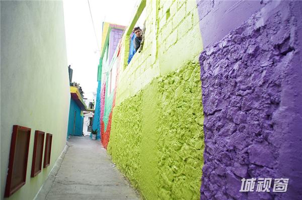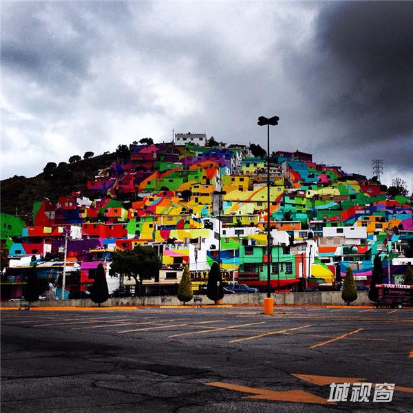 这个被彩色眷顾的小镇名叫Palmitas,位于墨西哥帕丘卡区(Pachuca district),生活着452个家庭,共计1802位居民。墨西哥政府找到的解决方法之一是请一队涂鸦艺术家(Germen Crew)将社区里所有的房子漆成了彩虹。艺术家们来到这里后,给209间房屋、超过2000平方米的墙面喷上了颜色。当然效果也是很惊人,当地政府报告说,自从小镇外貌焕然一新,这里就再也没有发生过年轻人之间的暴力事件了。