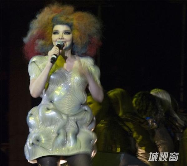 巴黎演唱会,比约克穿了Iris van Herpen做的3D打印服装