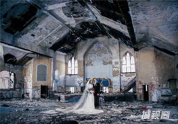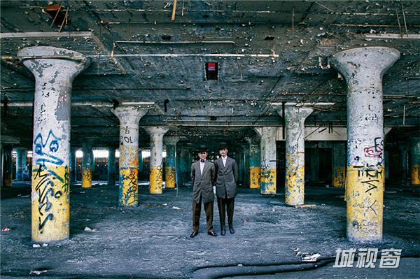 两个穿戴整齐的男人站在一栋废弃的建筑物里