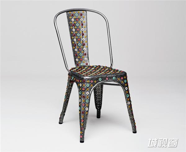 ↑bethan-laura-wood重新设计的座椅版本。 “我最喜欢这款座椅的地方便是它女性般的柔美。我认为这款座椅的成功来源于精密工业生产方法和材质柔和度的完美结合,尤其体现在座椅有弧度的靠背设计中。” 英国设计师bethan laura wood的改造版本中突出强调了“chaise A”座椅的柔美,设计师使用的材质和模塑过程中加入了精美细致的处理,力图在原版座椅的工业美中加入温馨的成分。设计师参考了历史上两位著名的女性形象作为灵感来源:电影《大都会》中的玛利亚和伊丽莎白一世。这款座椅参考了这两位女性强大的魅力以及二者的穿衣风格,表面经过镂空和镶嵌处理,十分精美。