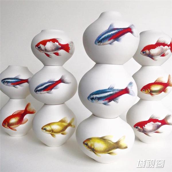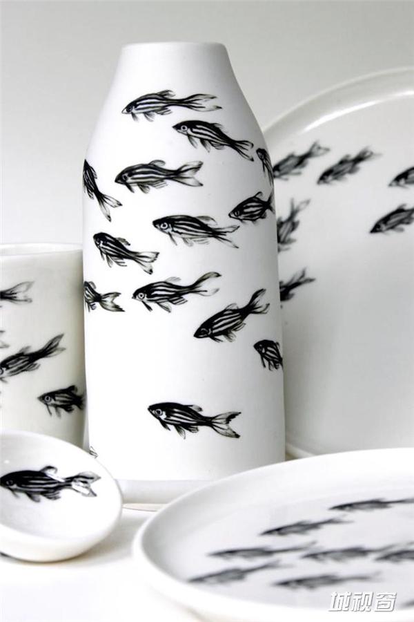 Niharika Hukku是一位喜欢在自己制造的瓶瓶罐罐上绘画的姑娘,而她最擅长表达活灵活现的鱼儿,几笔勾勒出的鱼儿仿佛游荡在白瓷之上,尤其是那些装上水的器皿,更加加深了鱼儿的灵性。“脑海中一旦开始一个想法时,所表达出来的内容即是我在我世界中发现的美和优雅”Niharika Hukku对在谈到创作灵感时谈到。除了对鱼儿的情有独钟,Hukku的作品多是对自然的表达,而其在陶瓷上的创作则是受其成长经历的影响。“陶瓷在印度有着非常古老的历史,我在那里出生长大,并希望将我的艺术与创作应用其中”。