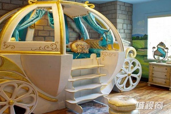 如果说白色南瓜马车还不能够满足于孩子的需求,那么这款儿童房绝对是为粉色控的孩子所准备的,小清新的碎花元素在这一空间里与粉色南瓜车造型的儿童床相搭配,集聚了女孩喜欢的元素,相信家中有女孩的话,她一定会钟意的。