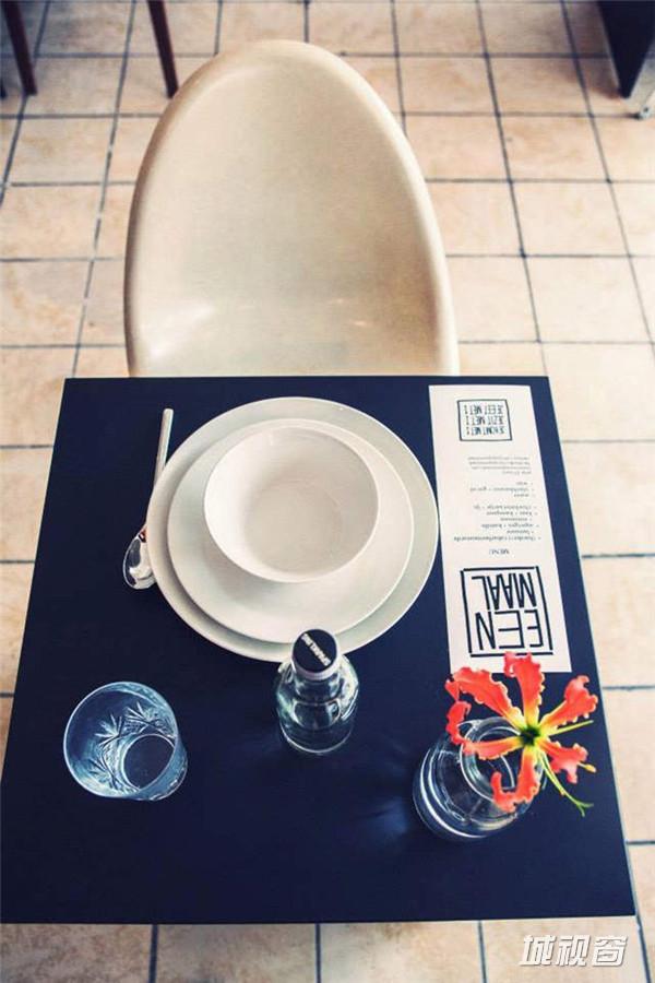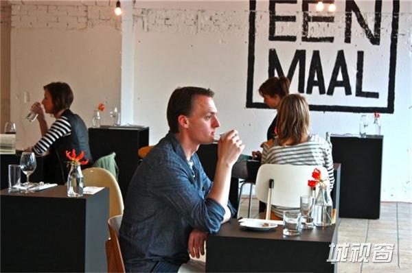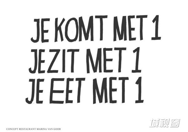 Marina Van Goor认为,一个人用餐时,是一段美妙的时光,因为那个当下自己与暂时与外界隔离了,那个时段,就只有自己,与眼前的美食,这个与外界暂时失去连结的时刻,人终于可以真实地看待周围的事物,专注品尝当下的味道与香气。所以在”Eenmaal”内,没有wifi,只有一人用的餐桌,每一个人都背对背,害羞的人也无须承受旁人眼光的压力,可以尽情享用眼前的佳肴,但也由于没有隔板的关系,若是想要和旁边的用餐者搭上几句话依然不是问题。