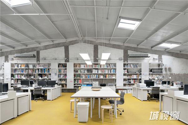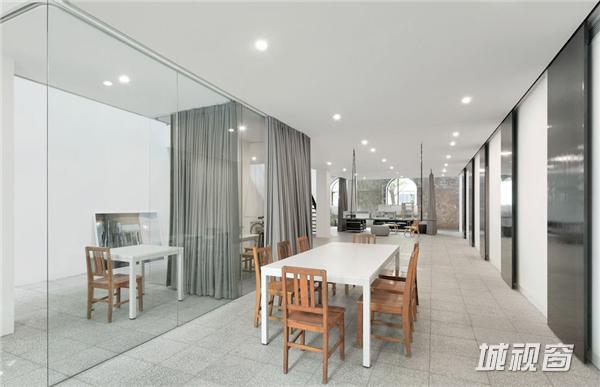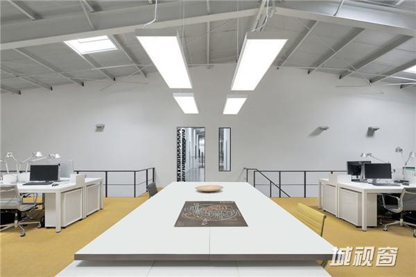 在内部空间的分区上,设计时将其拆解为4个独立的办公空间,每一个独立的空间被推向建筑的四壁,都避开了建筑的中部,让中心空间保持畅通性,亦可作为临时性活动场地。除了原有的窗户之外,重新设计的天窗部分允许更多空气与光线进入到室内,有助于保持内部的空气流动性与透光感。此外,办公室内安装了面向中庭打开的窗户,进一步将使用者的视野从开放式办公室环境延伸到中庭。