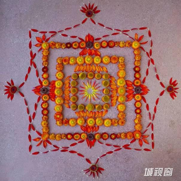 曼陀罗(梵文:Mandala,原义为圆形),意译“坛”、“坛场”、“坛城”、“轮圆具足”、“聚集”等。原是印度教中,为修行所需要而建立的一个小土台。这个传统被密宗吸收,形成许多不同形式的曼陀罗。之后为了修行的方便,又把这种修行的场所绘制或塑造成具像的表征,以供修行者观想意会,这时的曼陀罗实际上已经成为宗教与艺术的完美结合。