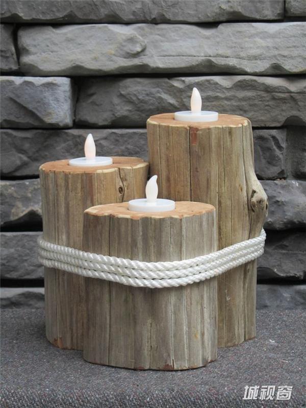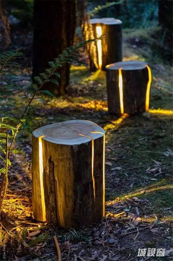 利用树桩,内置灯,路边照明,非常有意境。