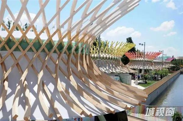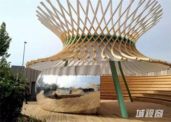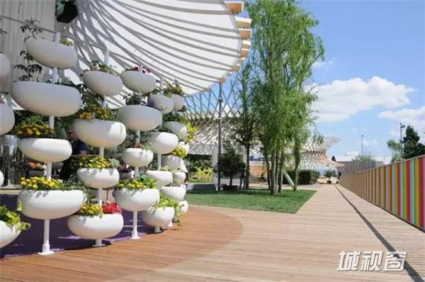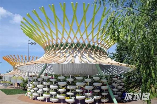 建筑师的目标不是建立建筑结构,而是使用花园的形式用于渗透的表面,编造元素能回忆植物或植物化石。这个结构,在顶层的颜色变得不那么强烈,也与沿公园边缘种植的河岸林创建一个关系。只是里面,世博会运河种植主题区域特殊的单色植被;装饰或结果树木、灌木与蝴蝶花园、芳香植物花园关联在一起。