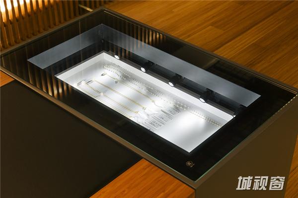 同时,竹子与珠宝构成了一种有趣的反差。自然原始的竹墙竹椅衬托出精致设计下的珠宝,强光照射在展示柜的玻璃上,它们在四周幽暗的环境里显得夺目耀眼,还有竹子本身的东方象征与珠宝的西方色彩之间的对比,都赋予了珠宝神圣的光芒。顾客需要走进展示台仔细欣赏准备的珠宝,正好体现出它们的郑重与珍贵。