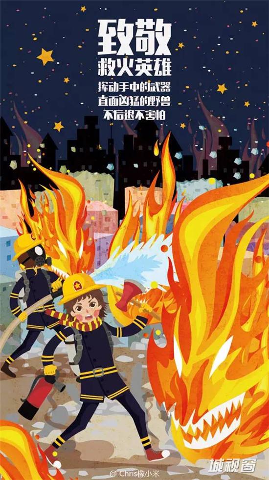 牺牲的消防官兵化作夜空星,继续照亮世界。