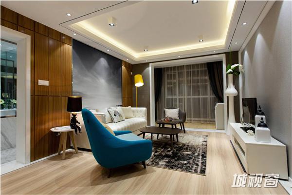 北欧风格木质饰面板的应用搭配皇家蓝的贵族色彩,一种具有高明亮度和饱和度的蓝色,恰到好处的搭配一些明黄色作为补色。感觉整个空间为之振奋,创造出潇洒有活力的生活态度。