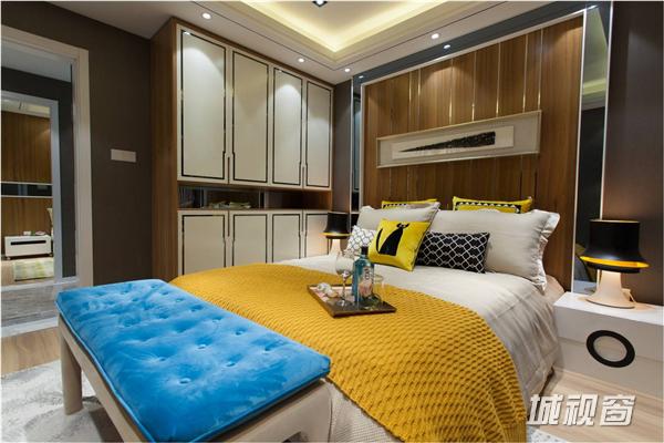 优雅内敛的木色饰面,代表着沉稳与内涵。搭配蓝色和明黄色的家具和床品,增强了居室的客观性。显著的泠暖对比有着视觉上的进退感受,与其他的家具布艺共同组合达成色彩上的和谐统一。适合人生旅途中正在前行的年轻人。