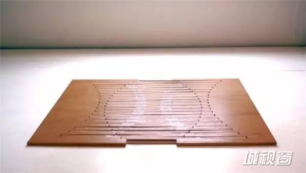 这是专门为iPhone手机设计的一款可折叠音箱。可以说它完全背离了传统音箱的样子,可以设计成这种形态完全取决于一种叫做FFT(Flat Flexible Laminated,平面可折叠薄板)的音箱制作工艺。当我们一个个展开这些发声部件,声音也会逐渐变大,以此来控制音箱的音量。