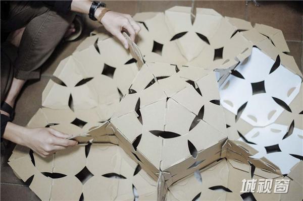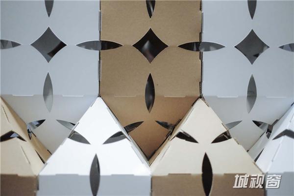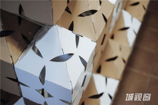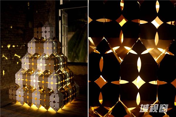 设计将传统伊斯兰的蜡染图案和几何图案,制成一块可折叠展开的小单元。