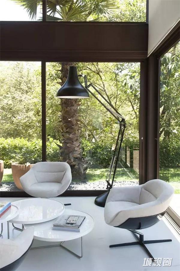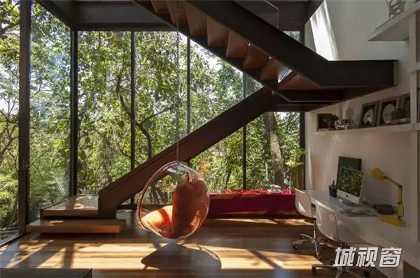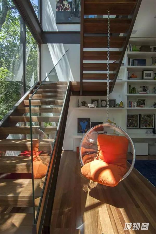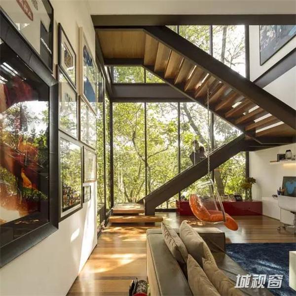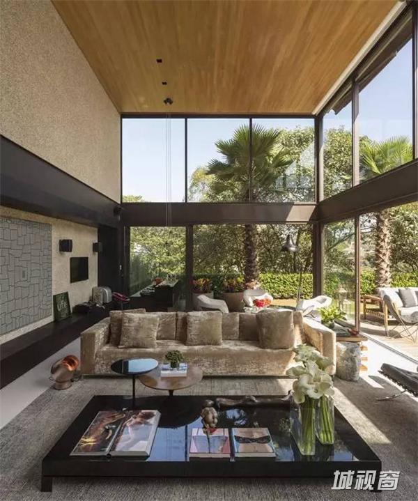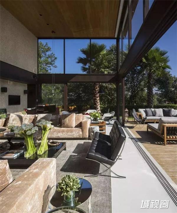 这座房子坐落在圣保罗郊外,房子周围树木茂密,这个成了整个建筑的设计出发点,每一处空间都萎了整合外部的景观成为室内的景象。去除不必要的装饰,简洁的布局和永恒的架构继承了密斯的理性主义。
