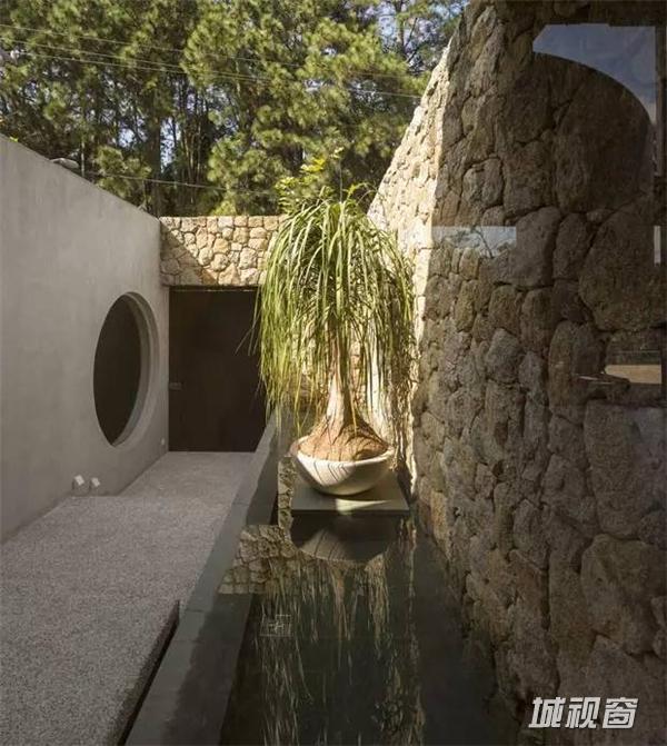 混凝土和石材,外墙使用的主要元素,结合与室内使用的天然木材。水平和垂直几何线条让空间更加宽敞,形成了设计家具与艺术品的理想背景。
