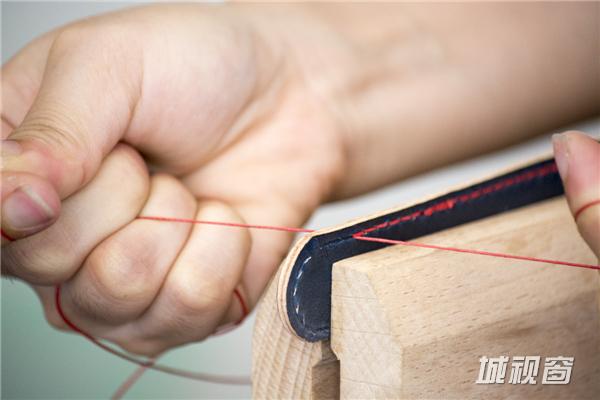 5、缝制,先用斩位打好孔,斩大体上可分为菱斩,斩位为菱形的,圆斩,斩位为圆的,一字斩,斩位为一字型的直的,另外一个比较流行的为橄榄型斩,是由菱斩改进而来,将菱形斩的两个大尖角磨圆就得到橄榄枝,造型更美观也更容易穿透,德国的格罗茨贝壳特机针最新的就是采用橄榄型的,布料皮料是相通的;