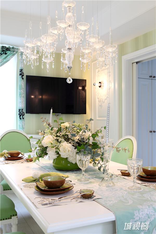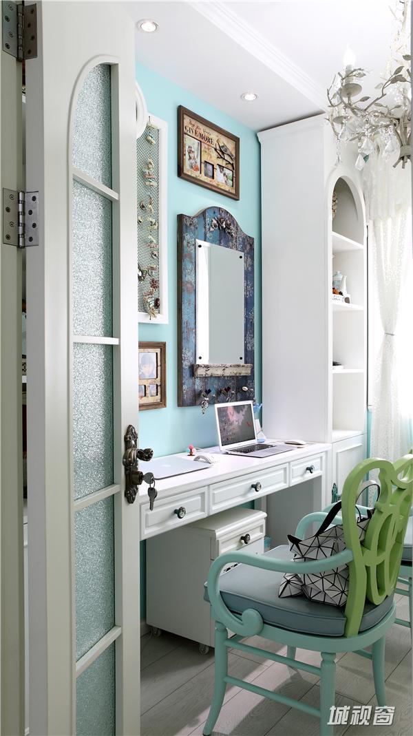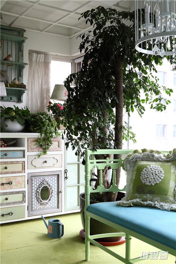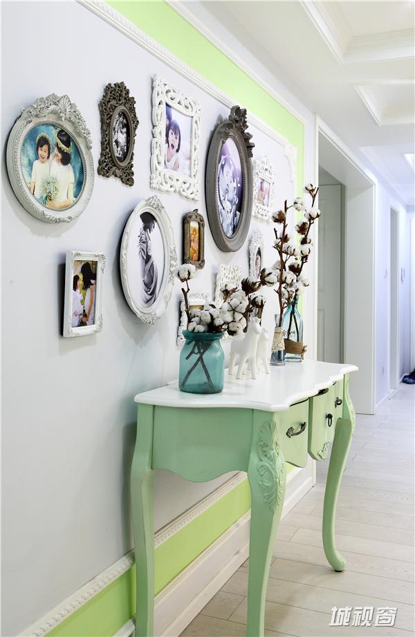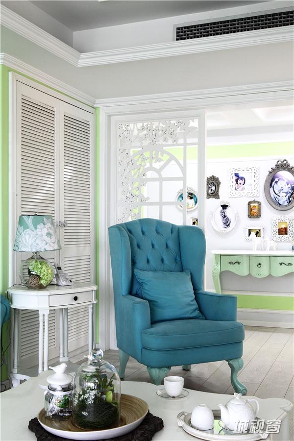 色彩上高度统一,整套作品都是以蓝,绿和白构成的。虽然整体成冷调,但各种点缀和饰品却让人处处感觉到家的暖意和温馨,软装配饰散而不乱,让观者能真切的感觉到这不是一个特意雕琢的样板房,而是实实在在的家,一个精致浪漫而温馨家。