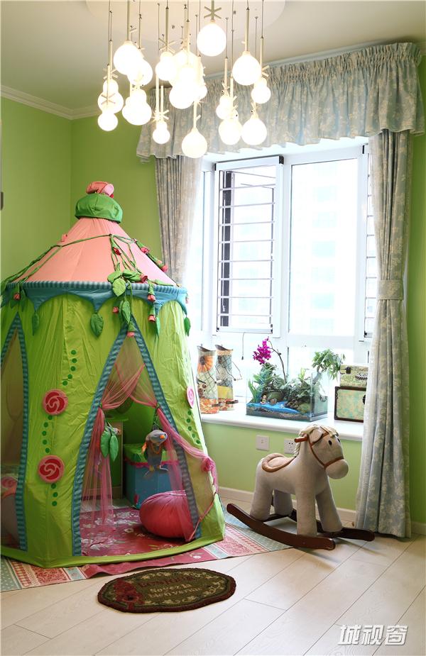 照明上尊重古典风格照明方式的同时,加入了一些现代照明的用光方式,而且几乎涵盖了所有种类的灯具,如吸顶灯,吊灯,壁灯,台灯,射灯,灯带和落地灯... ...整体照明手法是主灯结合多个辅助光源来整体照明的,这里值得一提的是壁灯的运用,整个空间(套内面积140平米)一共用了多达16盏壁灯,不但数量多,而且形式多样,比如餐厅壁灯是投影式的,而儿童房壁灯的运用则更多的是为了体现造型呼应和配合整体色彩,主灯在环境里主要起功能照明作用,而辅助光源则是为了烘托气氛,让房子的主人在一个舒适的光环境内生活和学习。