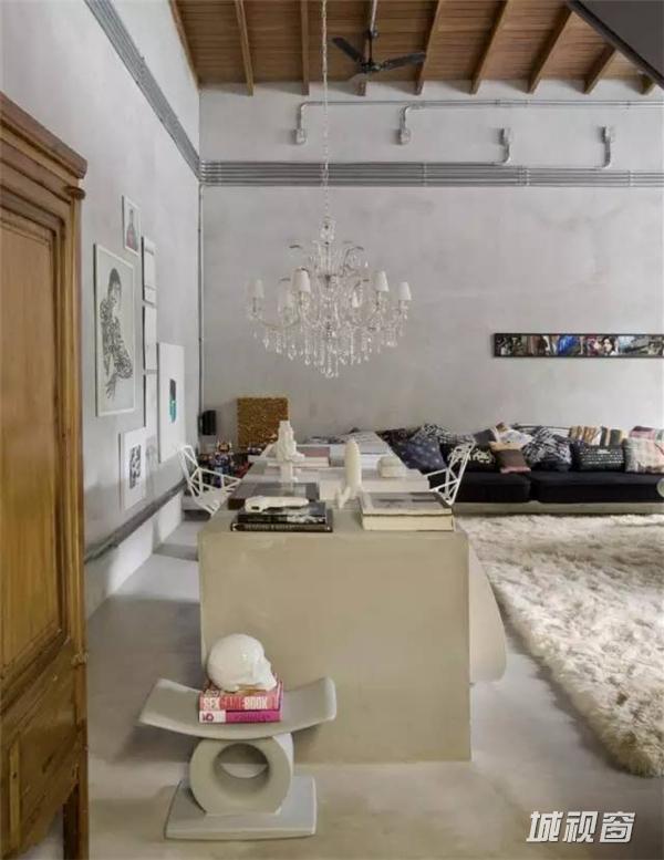 他做了一个混凝土的桌子和沙发,他这样说“作为一个家具设计师,我决定走与别人相反的方向,固定的家具可以创造长久的稳定”。