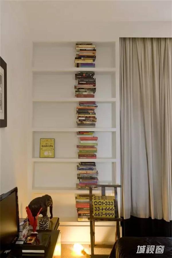 宁可把书放地上,也要让书柜空着一块,让书柜放空更有设计感。